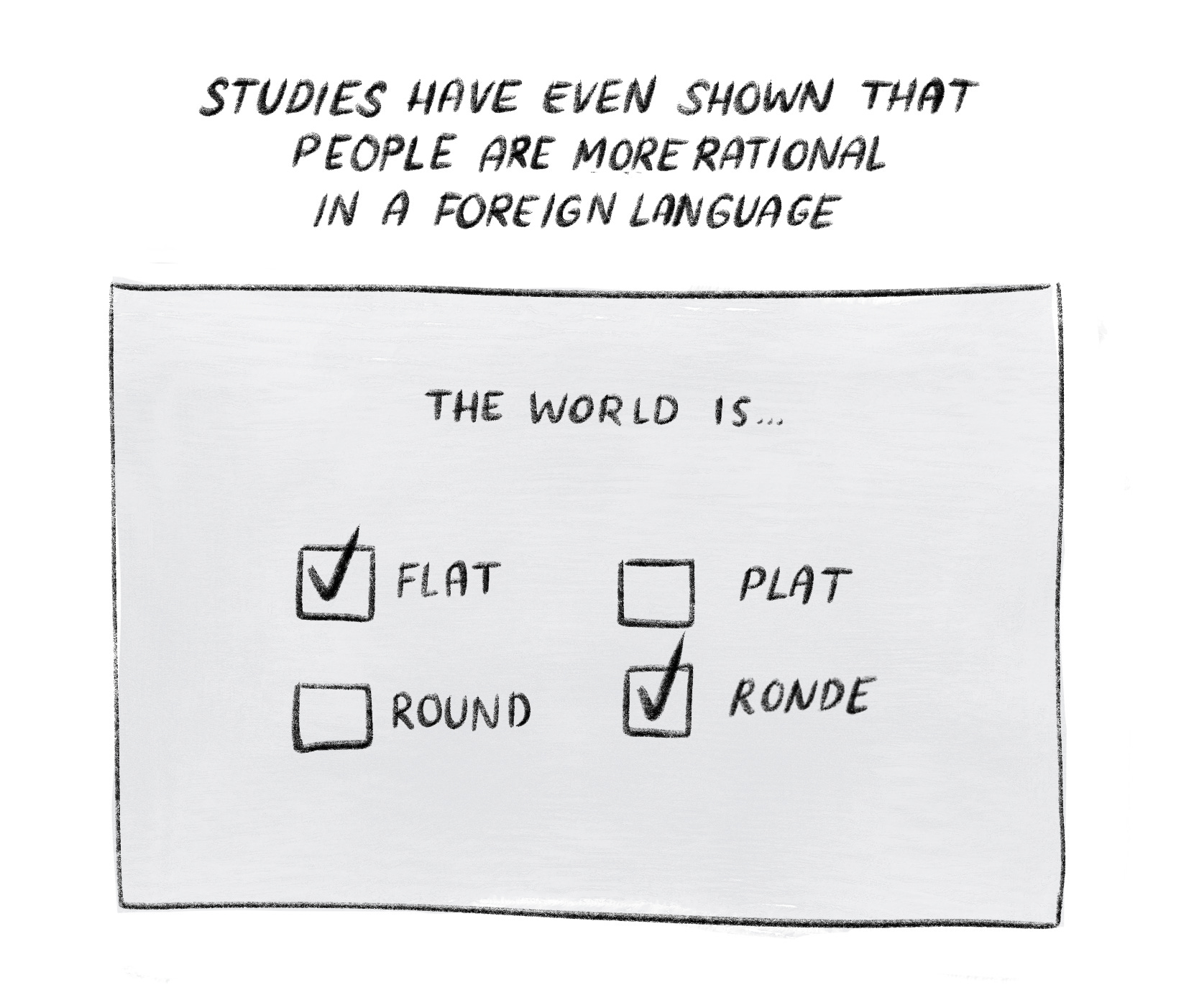 The facts I mentioned about rationality are from the article mentioned below, which studies moral decisions specifically. The research shows that when it comes to making moral decisions, participants make different decisions in a foreign language than when facing the exact same dilemma in their mother tongue. The foreign language actually “promotes deliberative processes and reduce emotionally-driven responses.”1 It shows decisions about “good” and “bad” are maybe less innate intuitive processes than we think. In one of the experiments they had participants respond to the classic trolley dilemma in their native vs. foreign language and found that the rate of utilitarian decisions in a foreign language was was increased by more than half!