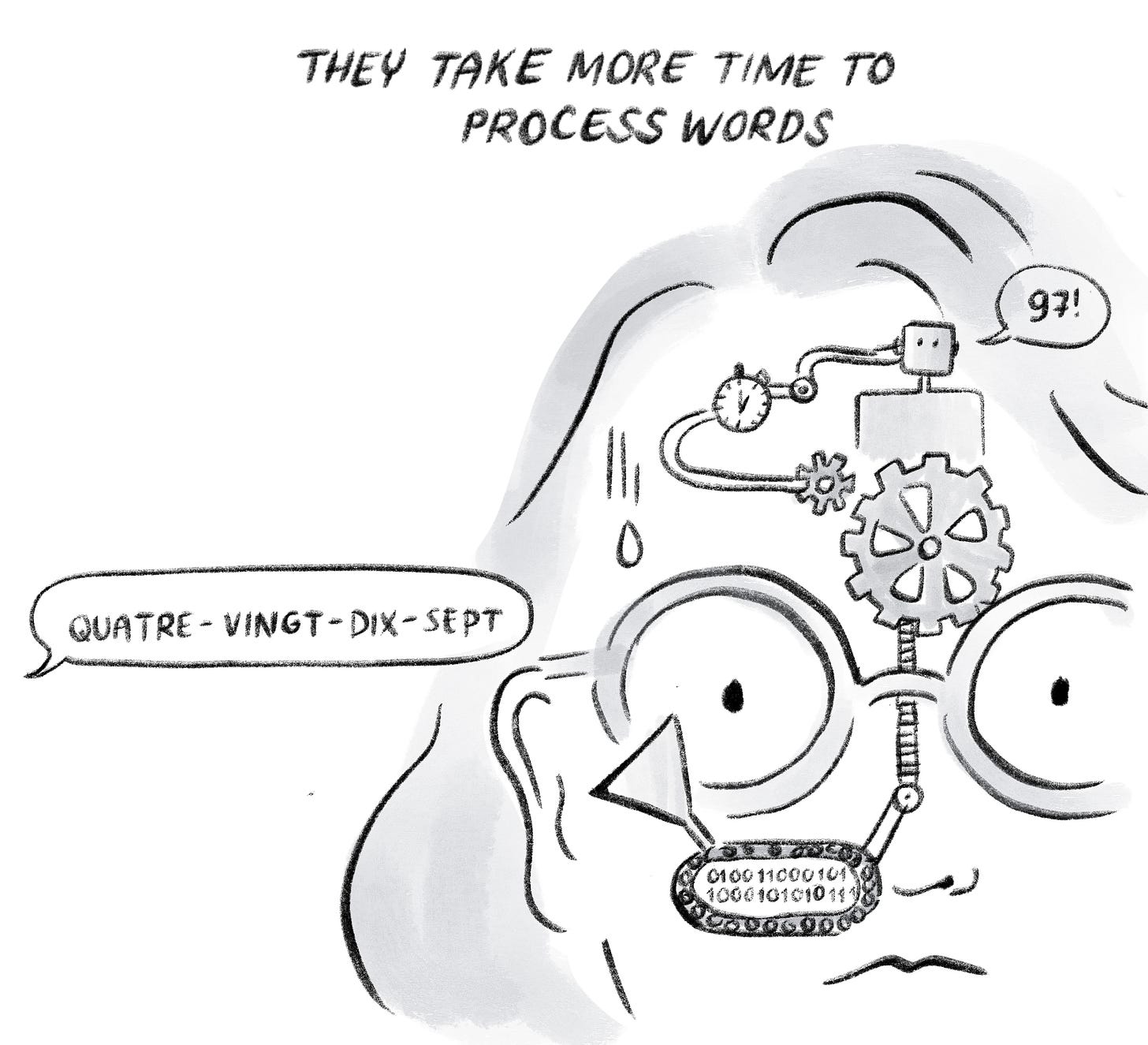 The "rationality" concept is fascinating!! Loved this comic + the extra info at the end, and especially laughed at the "quatre-vingte-dix-sept" part. (Fun story, I finally got a French phone number this weekend and was all excited that it was easy to remember because it had a lot of nines until my wife told me that the numbers are grouped into double digits so now I have to say quatre-vignt-xxxx like 4 times when I share it with people 🥲 yay