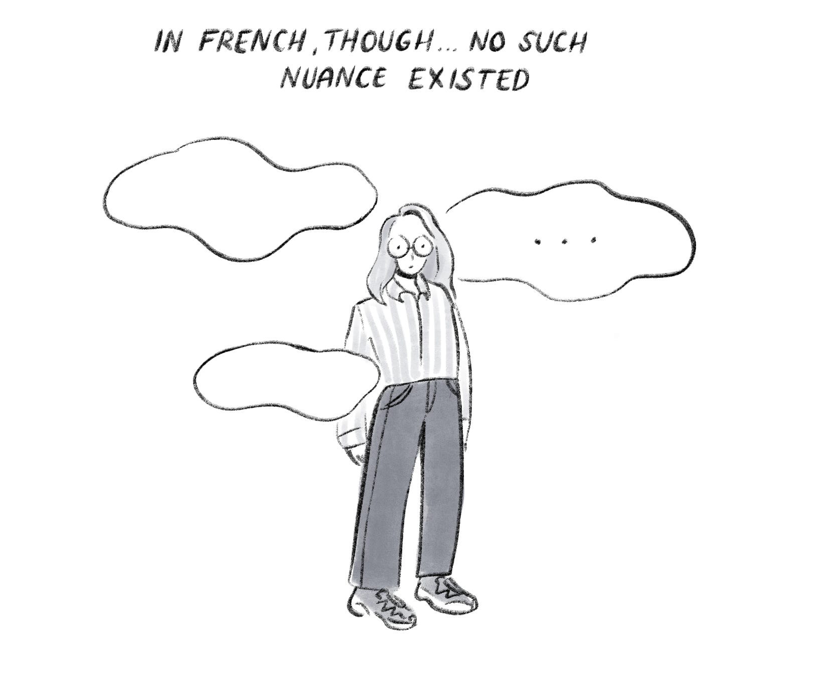 Last year I published the visual story “I don’t like myself in French”. Surprisingly a lot of people online and real life reached out to me to say it resonated with them, either because they also experienced an identity crisis while speaking a foreign language, or because they liked this insight into a multilingual lifestyle. In this post, I tried to highlight the other side of language: perception, because I couldn’t find a lot written about it. It feels like a niche topic initially but it also touches upon a lot of universal feelings of judgement and belonging, so I’d love to hear if it resonated with you in one way or another. You can read my other post here if you’re a new subscriber: